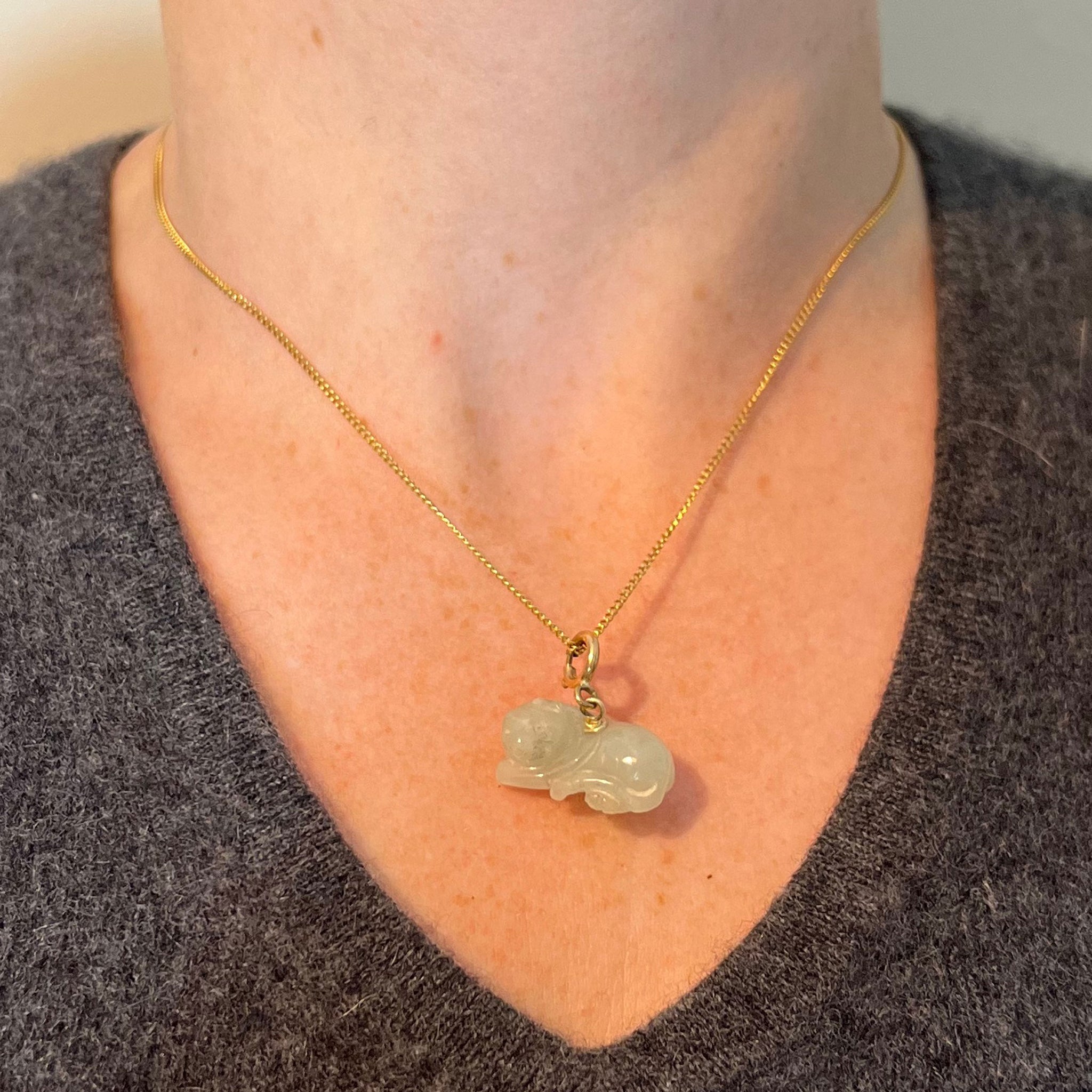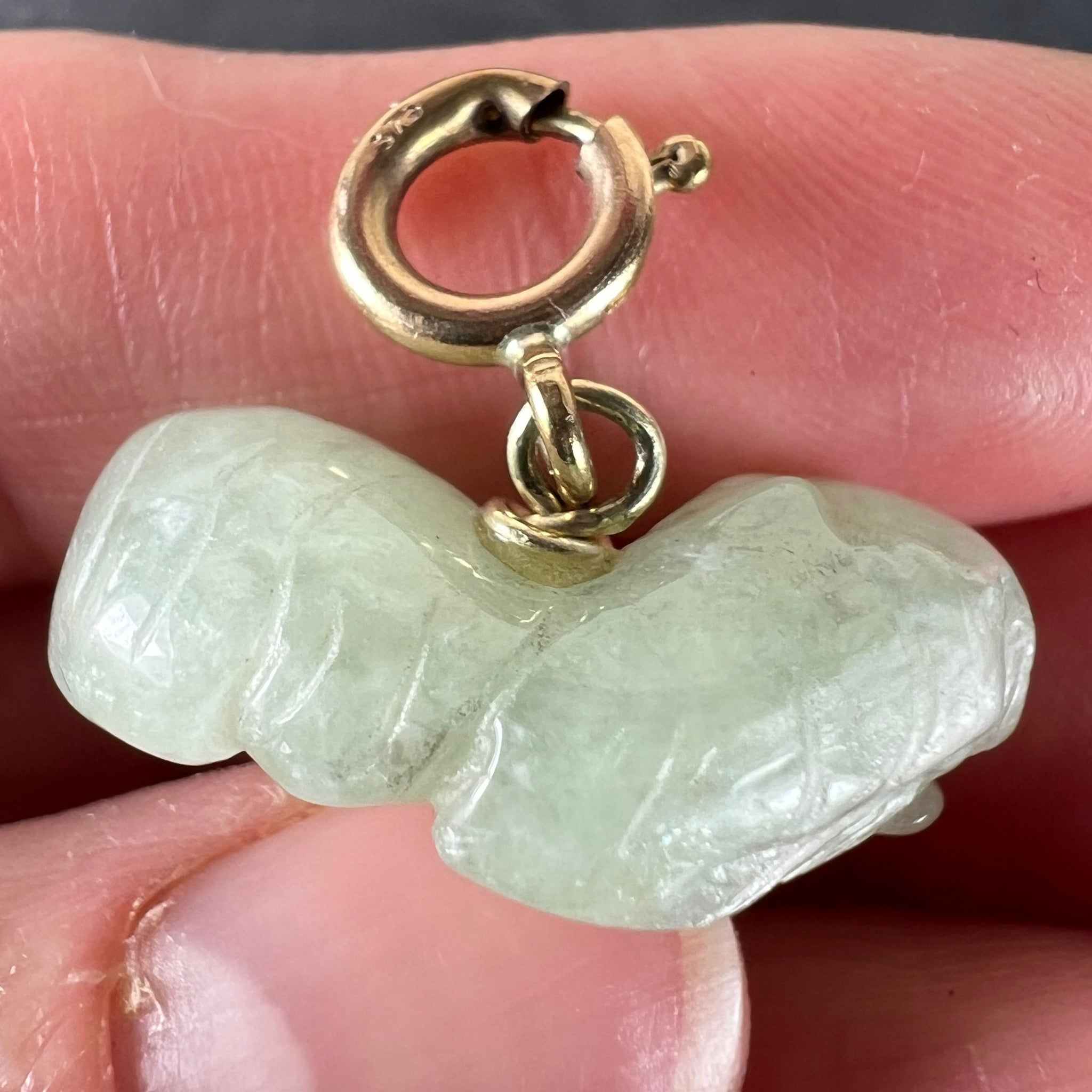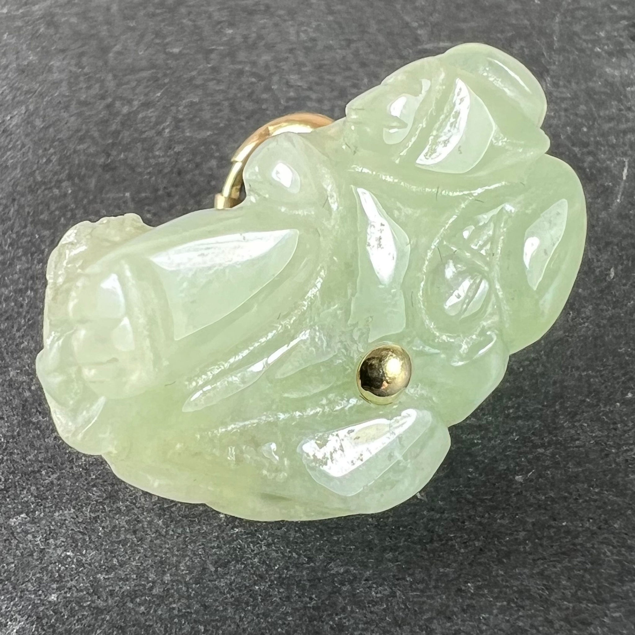 Vintage Carved Green Jade Tiger 9K Yellow Gold Charm Pendant