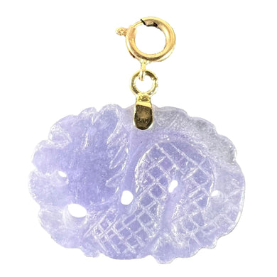 Vintage Carved Lavender Jade Dragon 14K Yellow Gold Charm Pendant