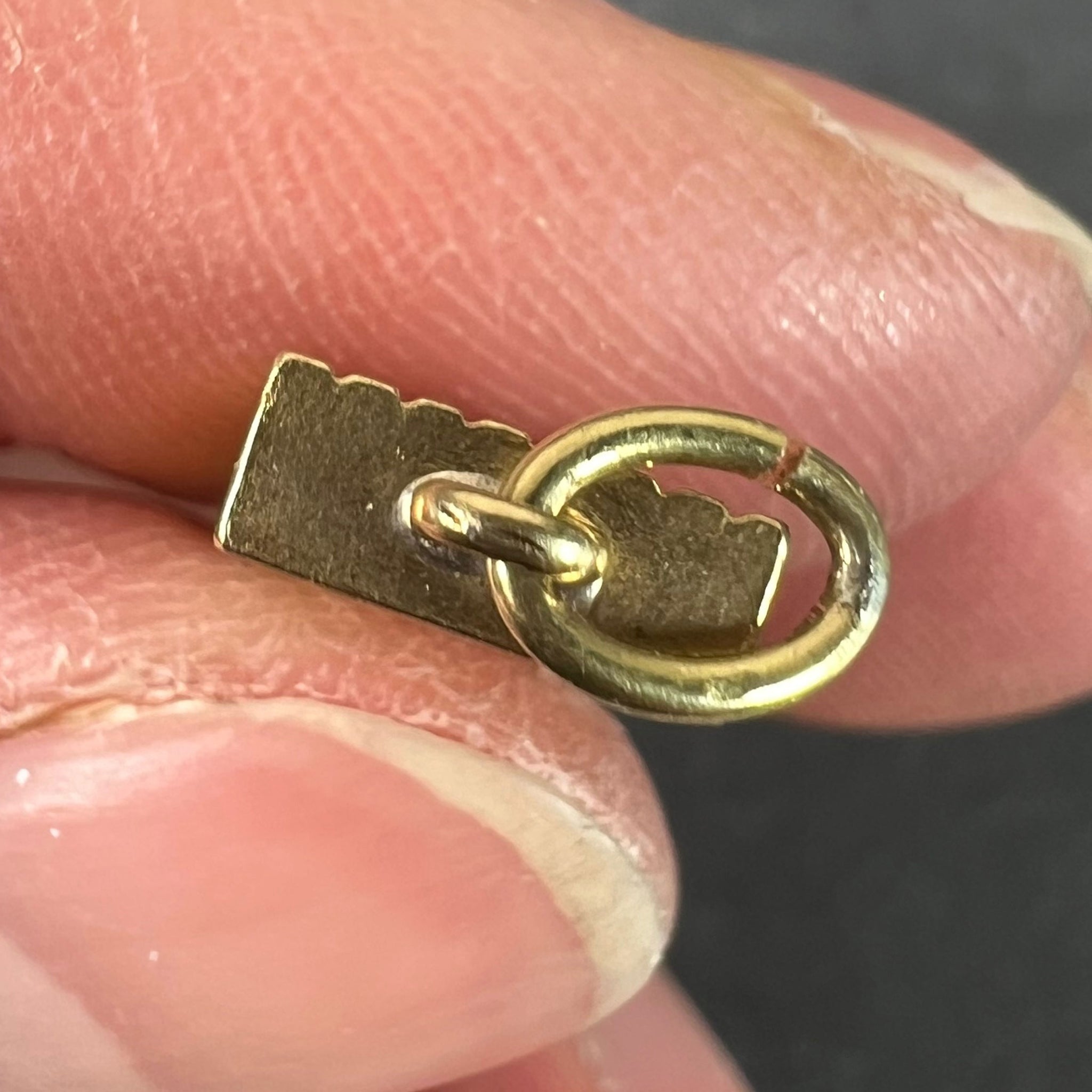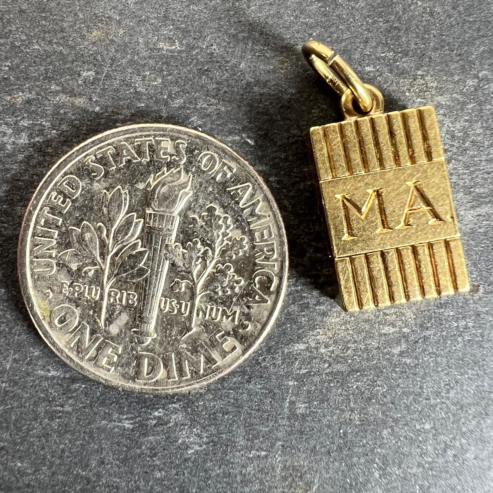 A vintage Art Deco 18K (18 karat) yellow gold charm pendant designed as a folding fob seal engraved with the letters MA, which, when impressed in wax, leave the initials AM. Unmarked but tested for 18 karat gold.