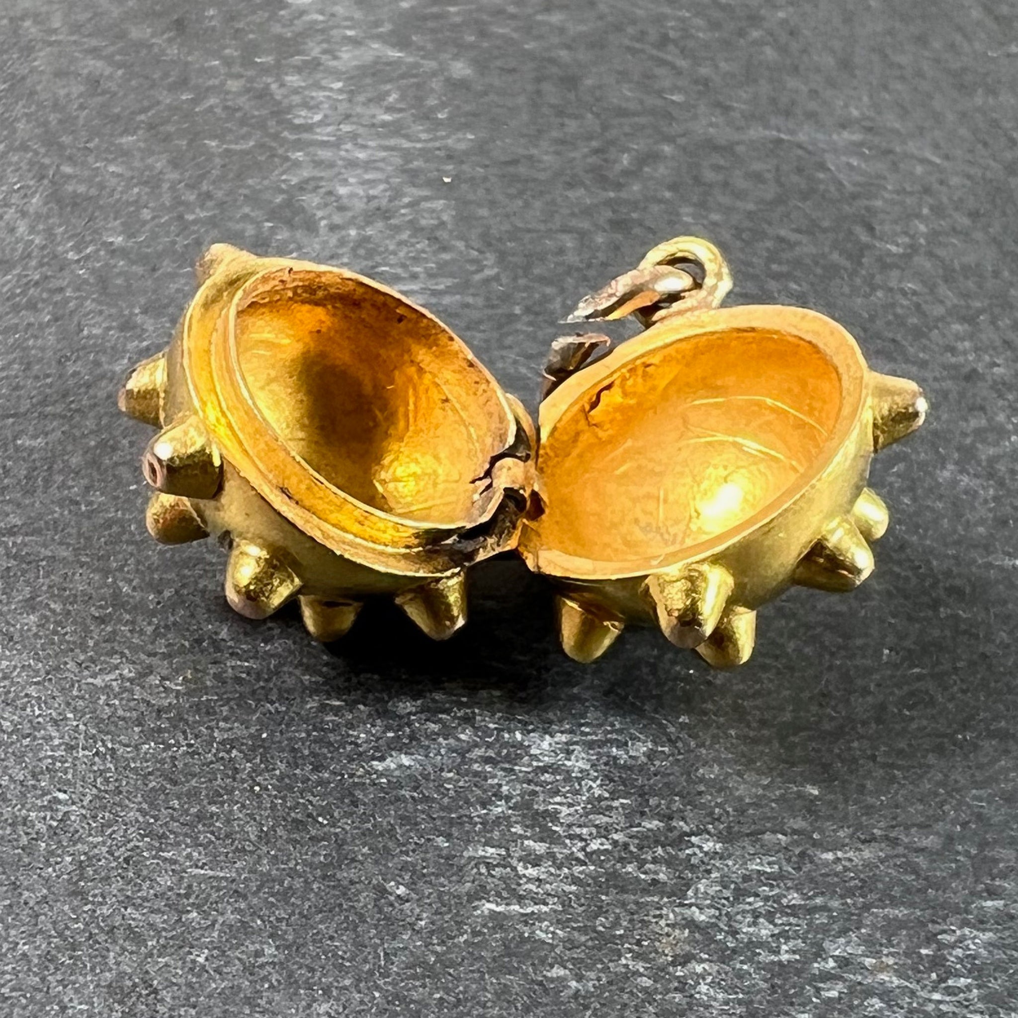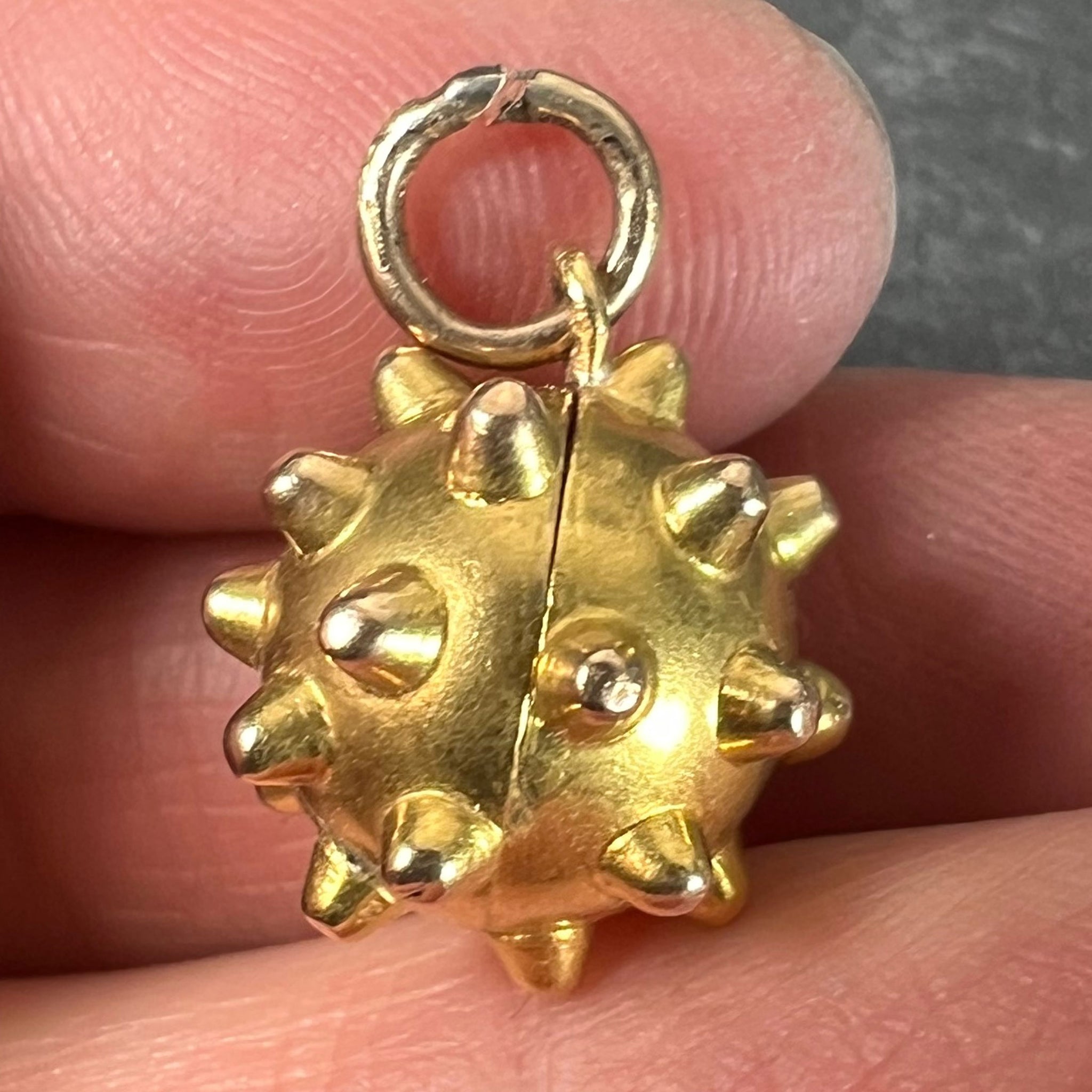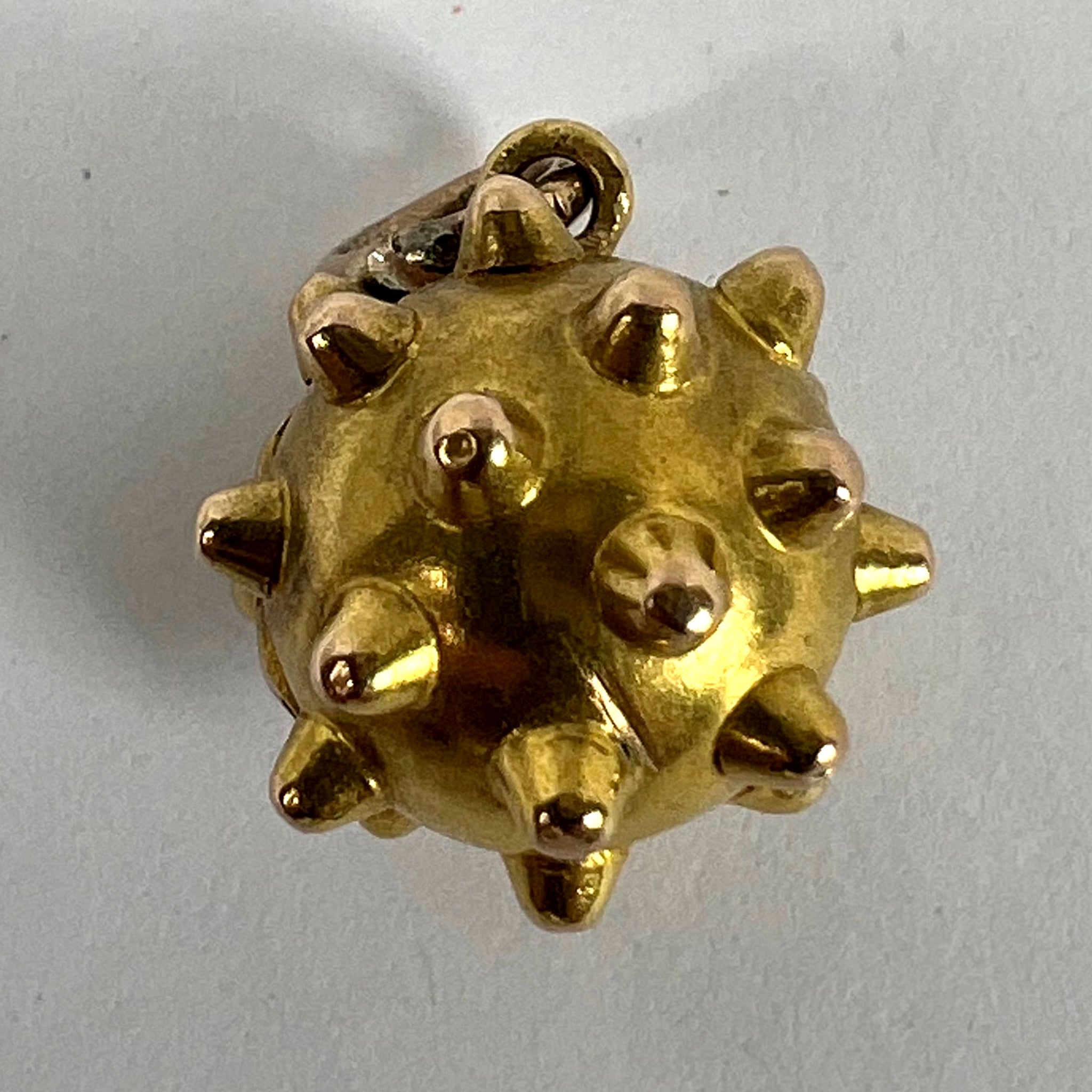 A vintage Art Deco 18K (18 karat) yellow gold charm pendant designed as a sputnik locket, the secure clasp opening to reveal a secret compartment. Unmarked but tested for 18 karat gold.