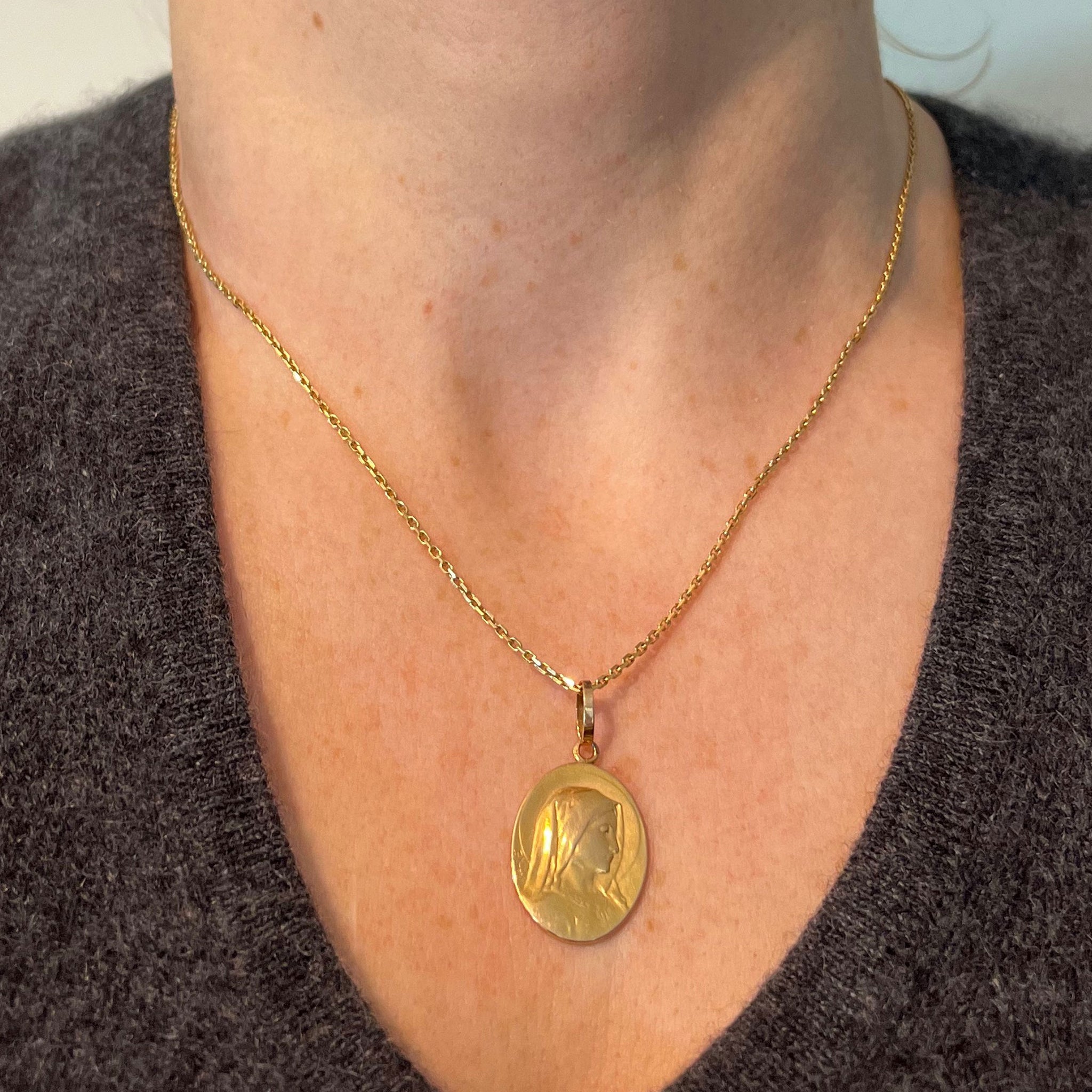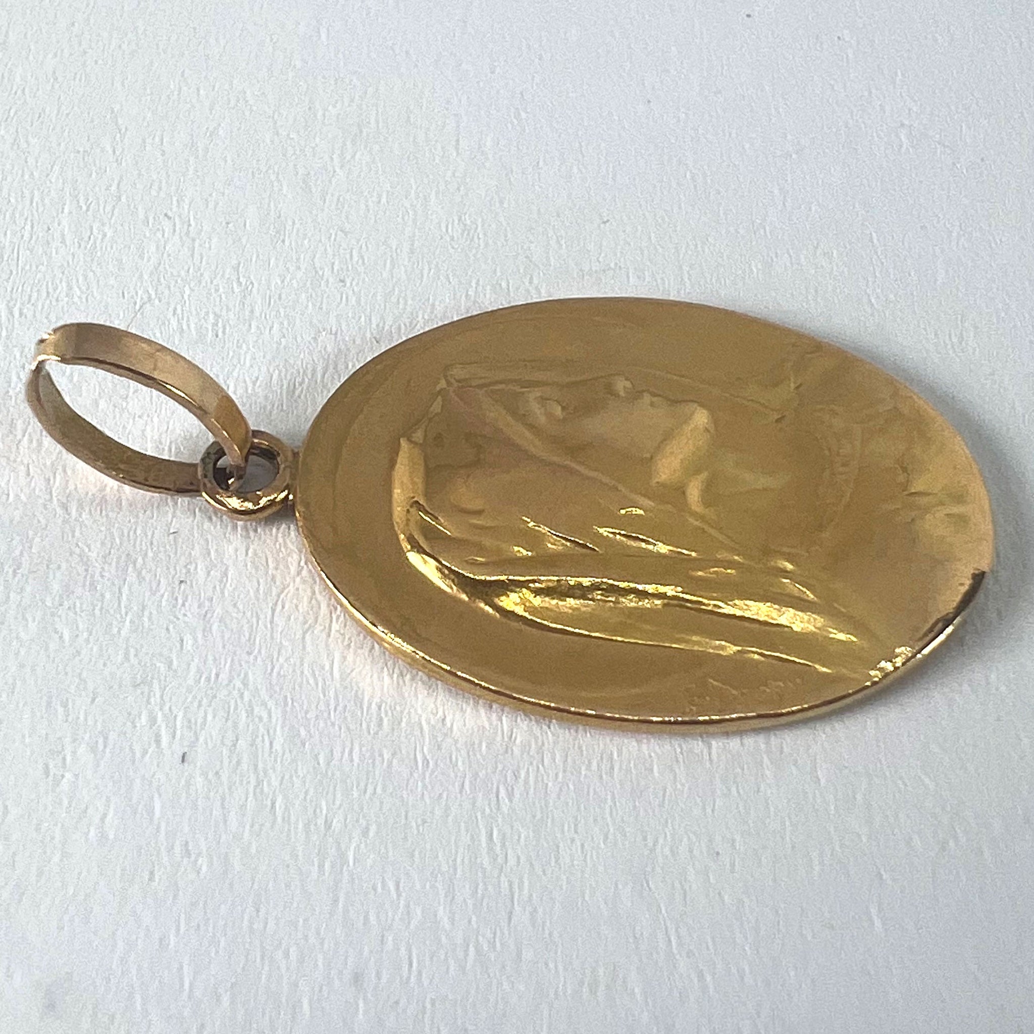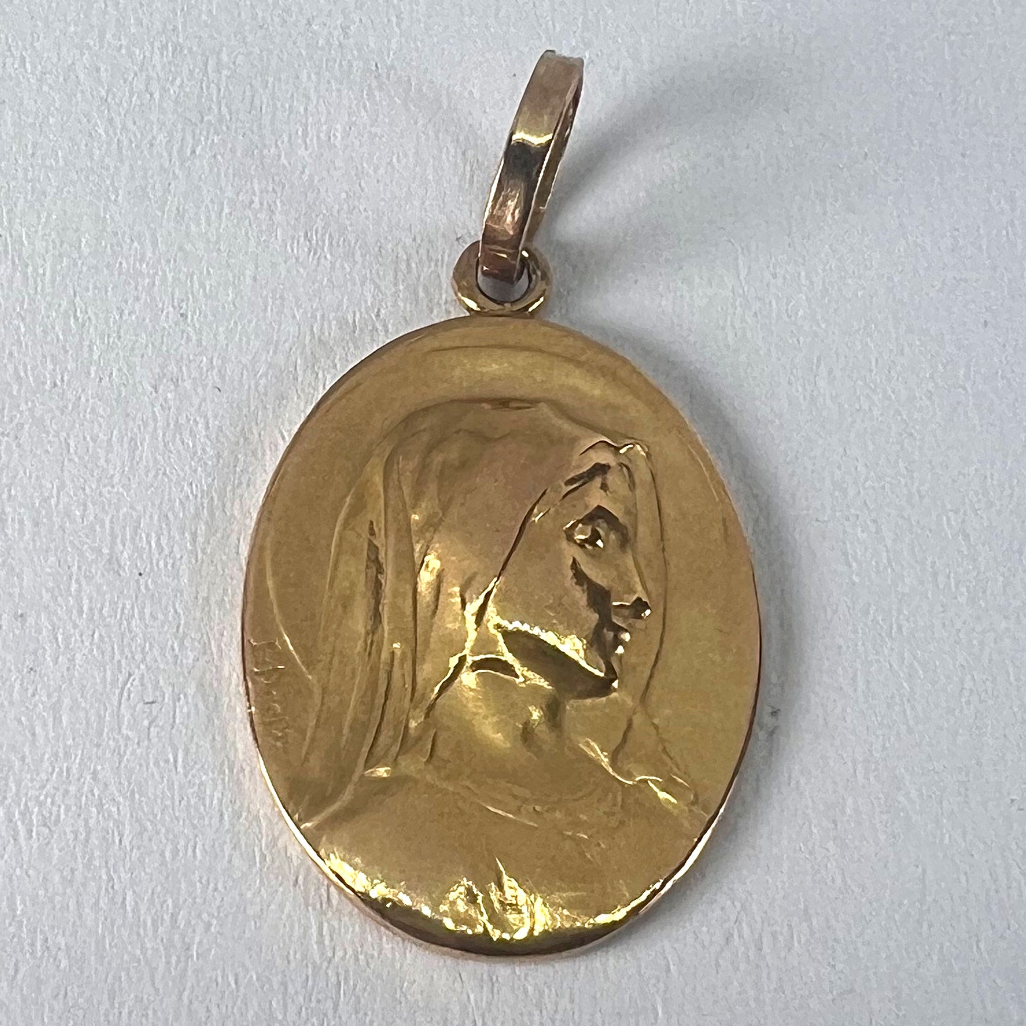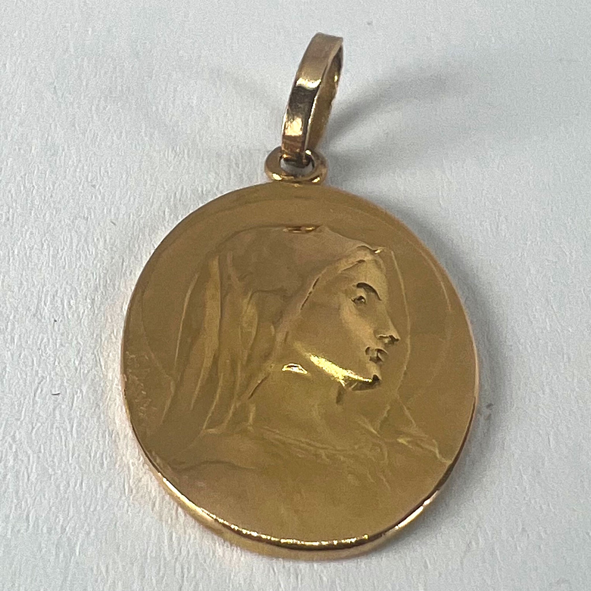 French Emile Dropsy Virgin Mary 18K Yellow Gold Religious Medal Pendant
